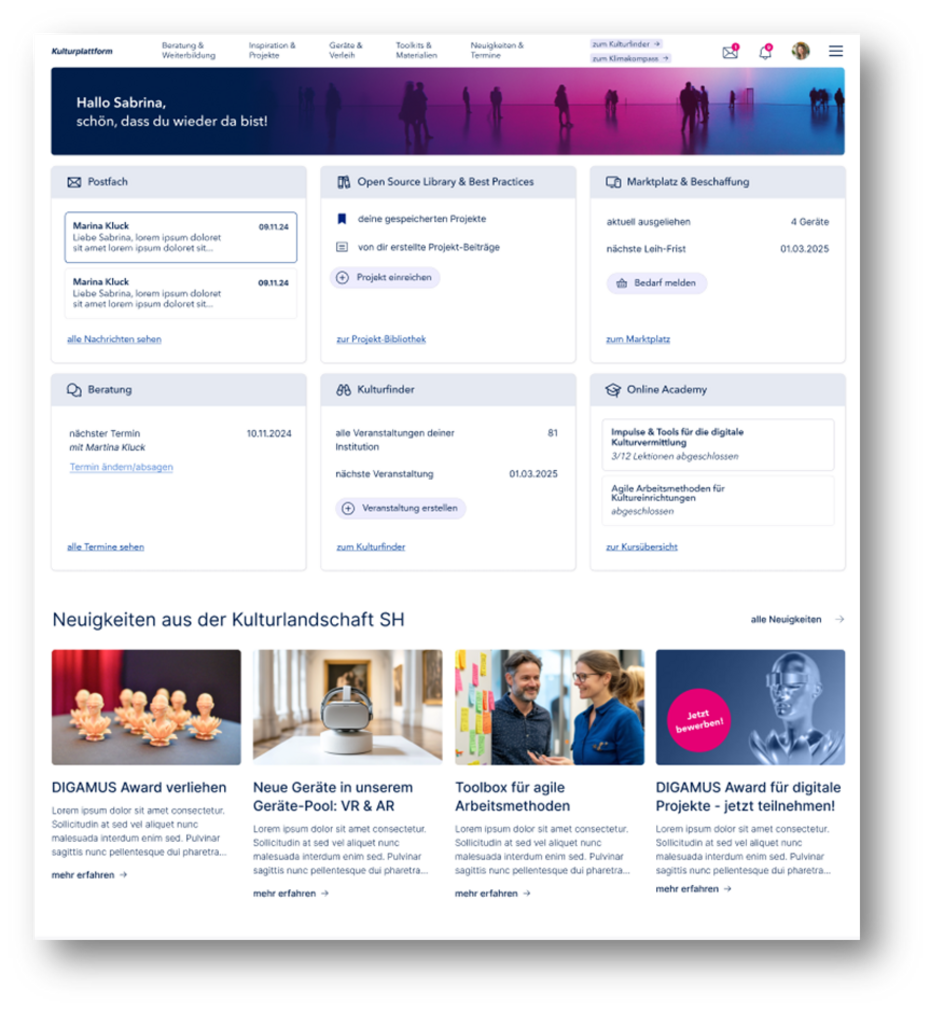 Die Einführung der Kulturplattform markiert einen entscheidenden Wendepunkt im Alltag und in der Arbeitsweise von Kultureinrichtungen. Mit der Plattform entsteht ein dynamisches Ökosystem, das Einrichtungen die Möglichkeit bietet, ihre Zielgruppenansprache, Öffentlichkeitsarbeit, Marketing und ihre Kooperation effizienter und zeitgemäßer zu gestalten sowie auf Dienste und Unterstützungen des Landes direkt zugreifen zu können.